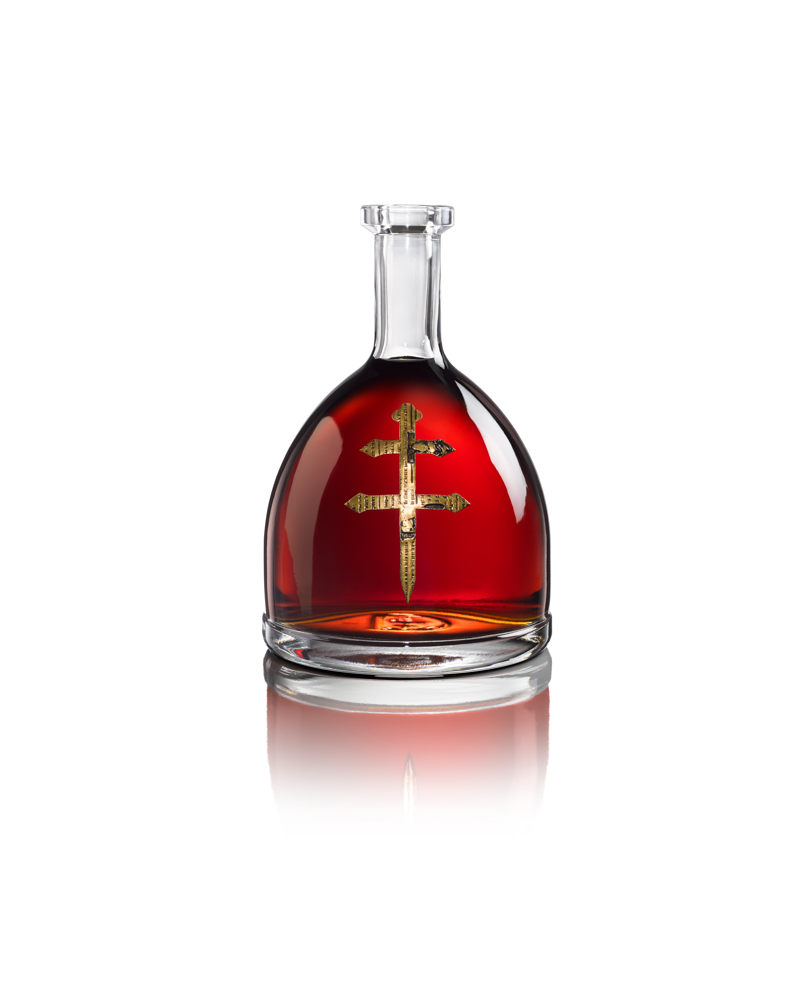 “Naturally aged at least four and a half years in the cellars of France’s Chateau de Cognac D’USSE VSOP Cognac emerges as a bold, full-bodied blend that arouses the palate. On the nose, it reveals a powerful bouquet, rich in woody notes that are layered with touches of cinnamon and floral notes. Distinctively and unexpectedly smooth, with each taste, you savor hints of spices, almond and cinnamon. Subtle accents of honey and dried fruits are the finale.”